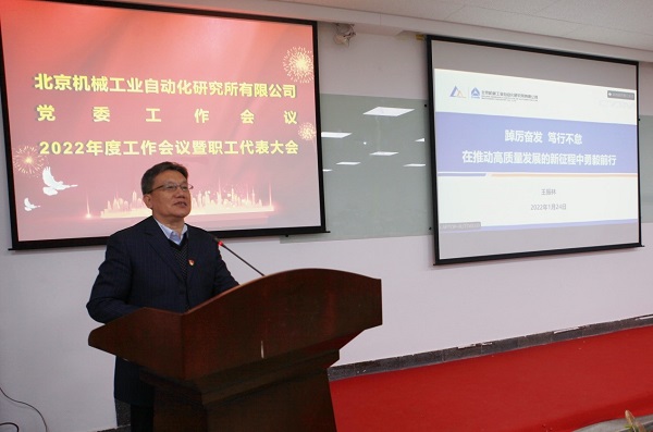 公司总经理李金村代表领导班子以《深化改革创新 聚力提质增效 奋力谱写“十四五”高质量发展新篇章》为题,做了2021年度工作报告。他指出,2021年是极不寻常的一年,北自所全面贯彻落实党中央国务院重大决策部署,坚持战略引领,发挥党建优势,把稳增长、调结构、推改革有机结合,全体干部职工攻坚克难、锐意进取,经营发展改革各项工作取得显著成效,实现了“十四五”良好开局。