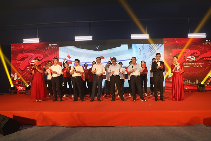 在演出的最后,北自所领导走上舞台和现场人员合唱《我和我的祖国》将气氛带入高潮,200余名职工挥舞着国旗,一起歌唱祖国,共同庆祝盛世华诞,文艺汇演在袅袅歌声和雷鸣般的掌声中缓缓落幕。