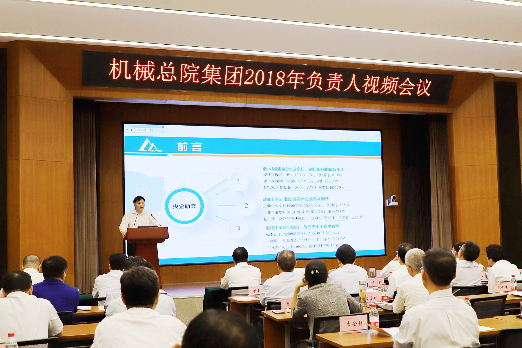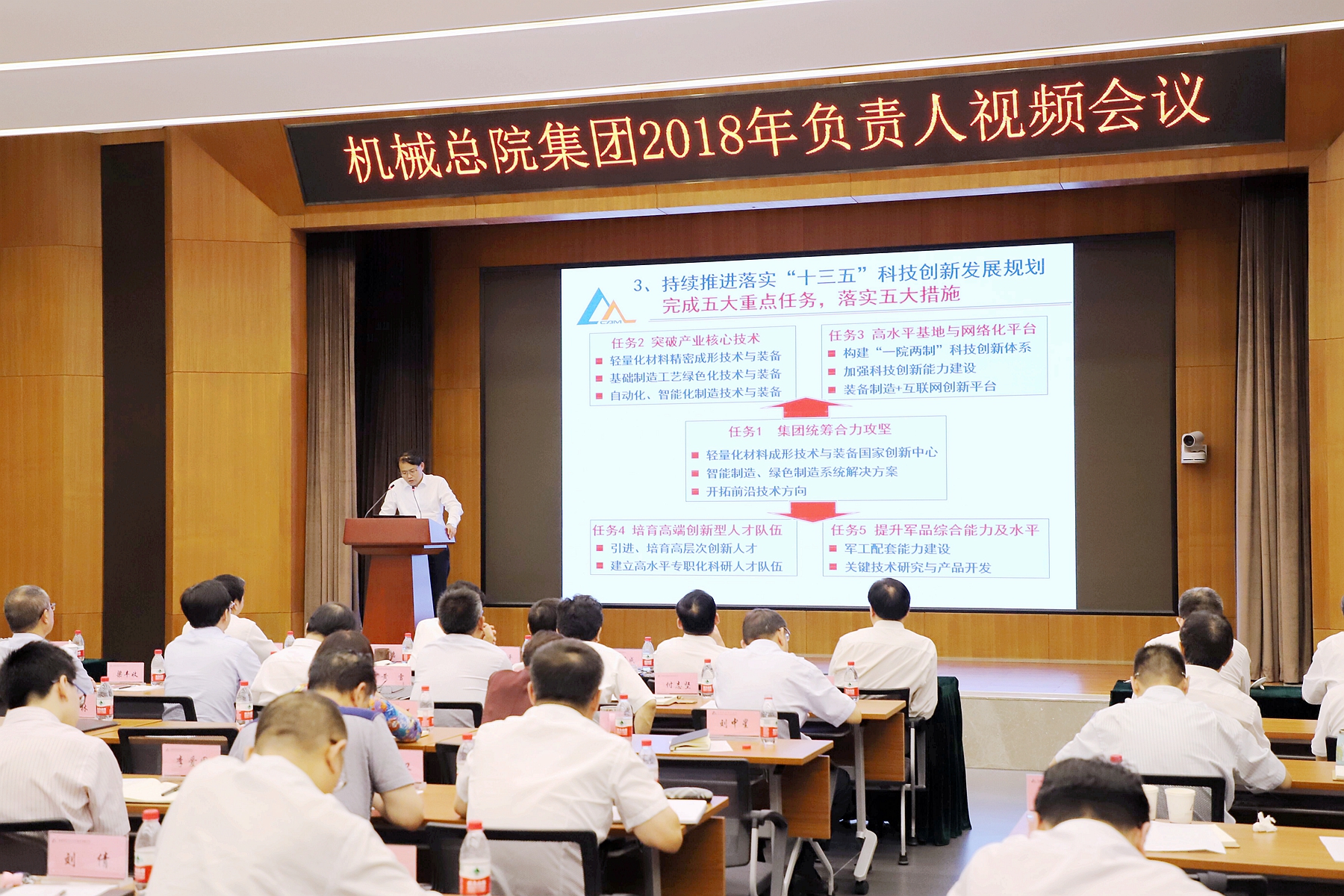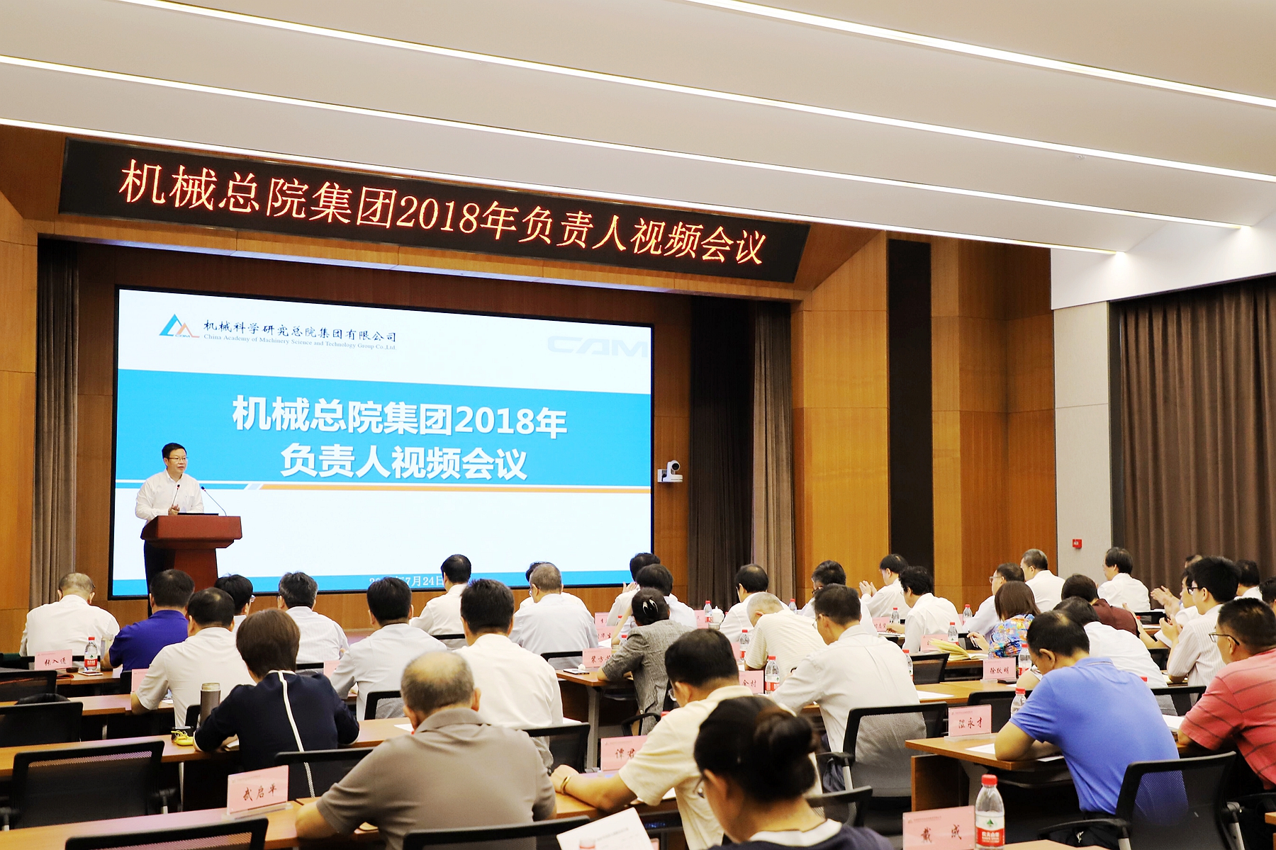 7月24日,机械总院集团召开2018年负责人暨党建工作视频会议,深入学习习近平新时代中国特色社会主义思想和党的十九大精神,贯彻落实中央企业地方国资委负责人视频会议精神,总结上半年重点工作,分析形势、交流经验,部署落实下半年重点任务,深入推动“十三五”战略实施。集团董事长、党委书记、总经理王德成做了题为《提高政治站位 强化责任担当 狠抓工作落实 全面推动机械总院集团高质量发展》的重要讲话。