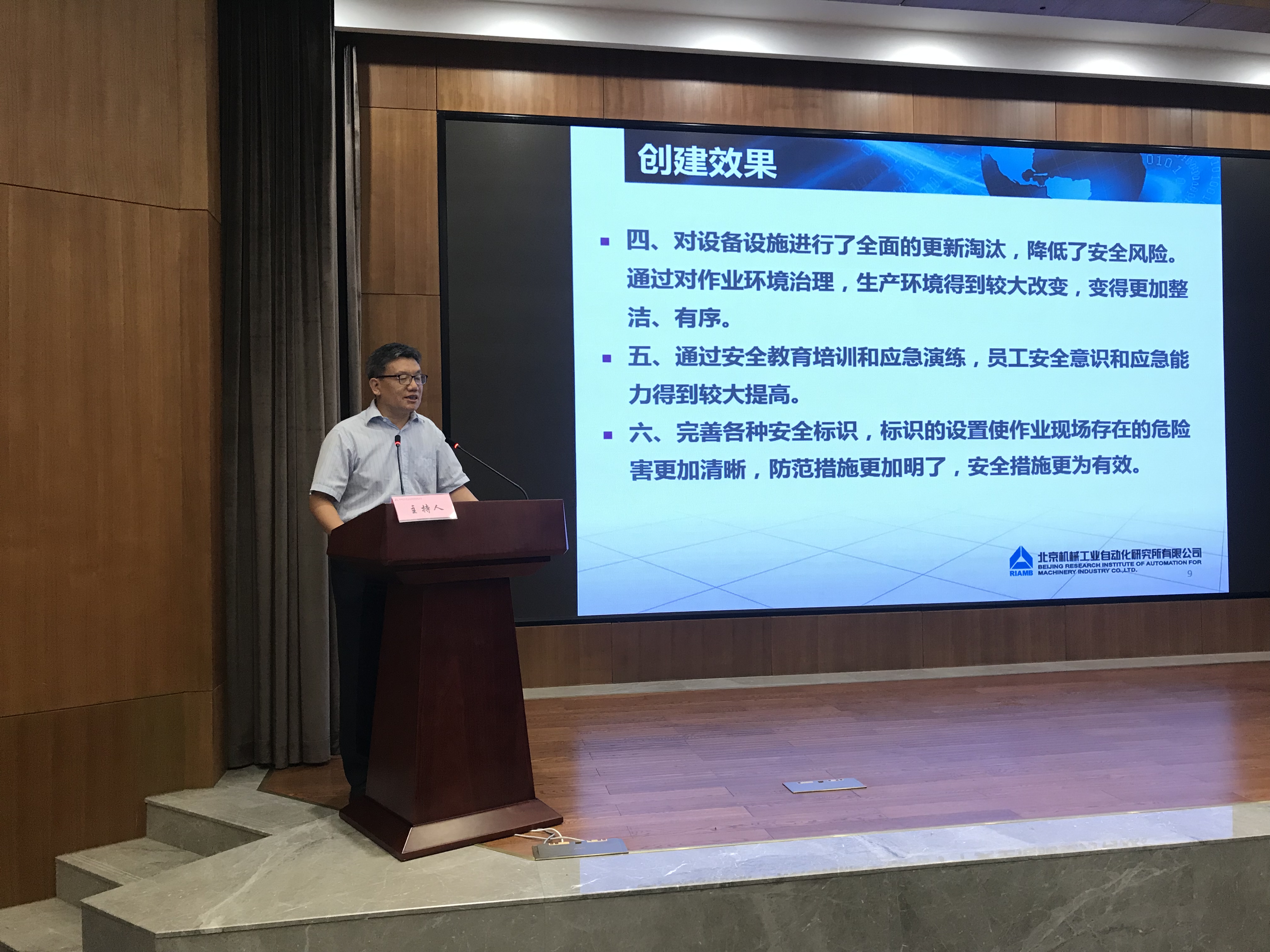 集团副总经济师、战略投资与运营部部长褚毅主要传达了上级工作精神,报告了集团安全及环保工作情况,提出了工作建议。中联认证中心副总经理曹仲京对2018年度集团各单位安全生产检查情况进行通报。北自所党委书记王振林做工作交流报告。会上特邀中国安全生产科学研究院研究员、中国职业安全健康协会卫生分会副主任邢娟娟做了《现代安全管理与法律责任》的专题培训。