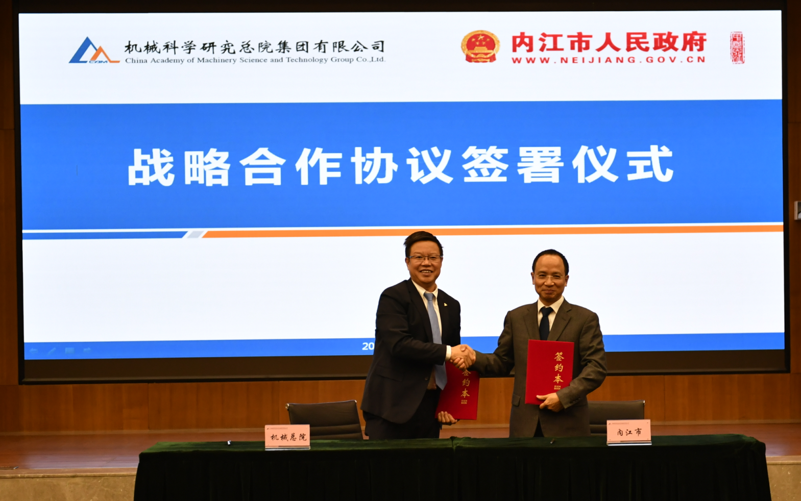 为贯彻落实习近平新时代中国特色社会主义思想和党的十九大精神,深化内江市与机械总院集团战略合作,10月24日双方在京签署战略合作协议。机械总院集团党委书记、董事长、总经理王德成、党委副书记、副总经理王西峰,内江市委书记马波、市委副书记、市长任晓春、市委常委、副市长付大为、市委常委、秘书长李思明、副市长蒋学东等出席签约仪式。会议由机械总院集团党委委员、副总经理单忠德主持。