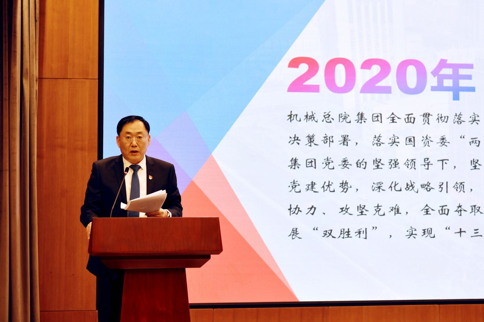 王西峰总经理指出:2020年,机械总院集团全面贯彻落实党中央国务院重大决策部署,落实国资委“两个力争”要求,坚守底线思维,发挥党建优势,深化战略引领,全体干部职工同心协力、攻坚克难,全面夺取疫情防控和经济发展“双胜利”,实现“十三五”战略圆满收官。2021年,机械总院集团将以习近平新时代中国特色社会主义思想为指导,全面贯彻党的十九大和十九届二中、三中、四中、五中全会精神,立足新发展阶段、贯彻新发展理念、构建新发展格局,坚持稳中求进工作总基调,聚焦高质量发展,按照“做强科研、做优经济、做大影响力”目标,实施集团“十四五”战略规划,坚持深化改革,发挥创新优势,抢抓市场机遇,有效控制风险,全力确保技术经济持续健康发展。