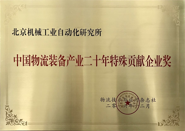 北京机械工业自动化研究所(以下简称“北自所”)在本次庆典中荣获“中国物流装备产业二十年特殊贡献企业奖”。