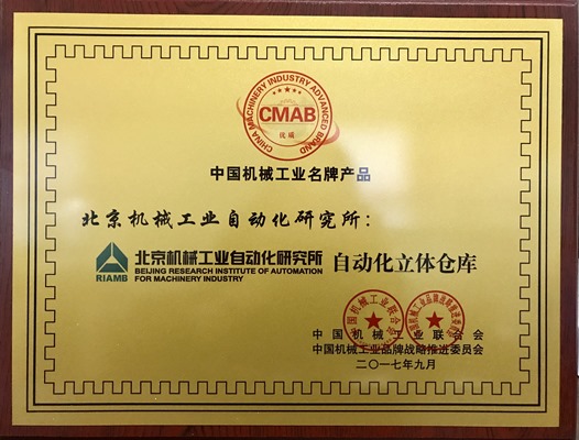 经会议评选,北自所自动化立体仓库技术先进、布局合理、存取自动化程度高、操作简便,大大提高了企业生产效率和管理水平,获得业界及用户的一致好评,荣获“中国机械工业名牌产品”奖。
