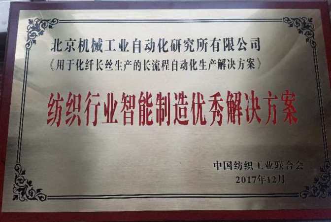 本届大会上,北京机械工业自动化研究所(以下简称北自所)凭借扎实的智能制造技术、丰富的工程实施经验、综合的解决方案和全面周到的配套服务,成为了十家首批获得“纺织行业智能制造优秀解决方案”研发服务单位之一。