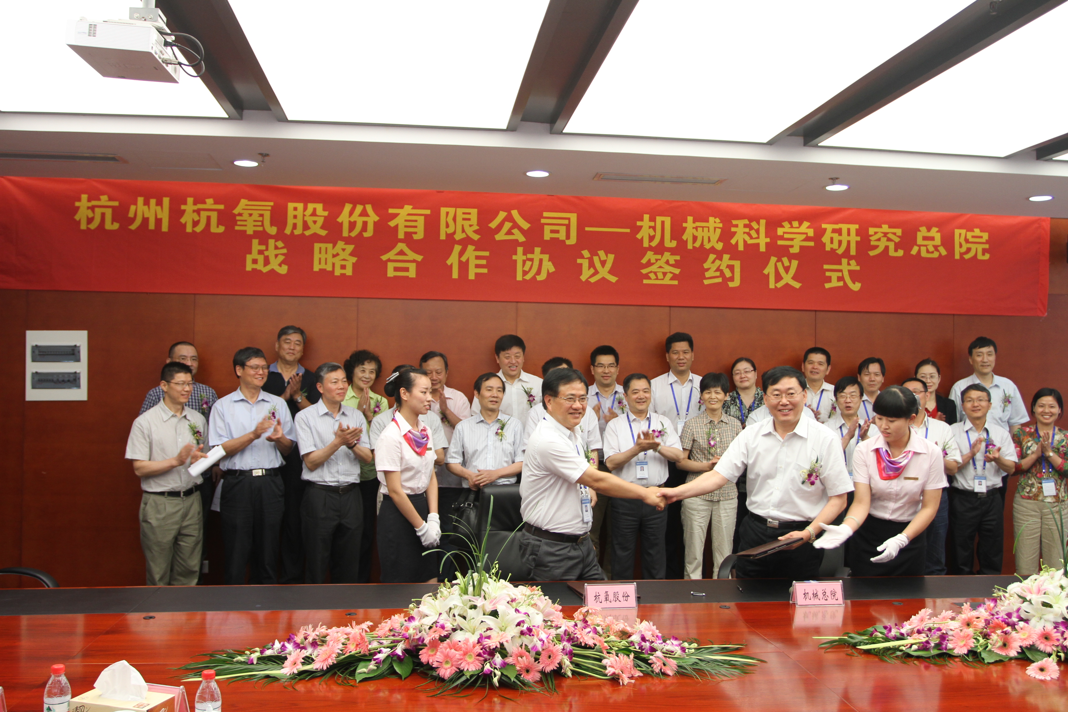 机械科学研究院浙江分院有限公司与杭州杭氧股份有限公司自2008年杭氧集团开始迁扩建项目开始合作,至今已为杭氧集团成功开发非标成套装备及生产线二十多台套。双方签订《战略合作协议书》,将进一步促进双方全面合作,充分发挥总院装备制造业综合优势支撑杭氧集团长足发展。